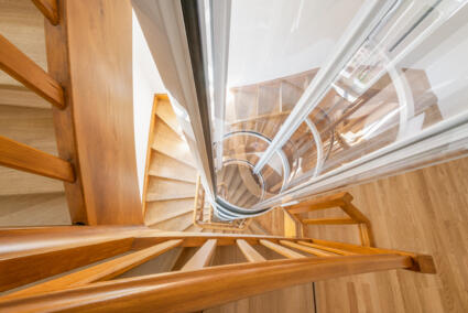 Im Treppenauge des Baudenkmals erfolgte der Einbau eines kleinen Aufzugs, der im Kontrast zur historischen Umgebung geradezu futuristisch erscheint. Zum Zeitpunkt des Einbaus ein Novum – der einzige Vakuum-Aufzug in München.