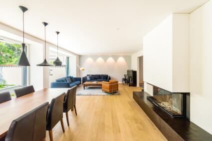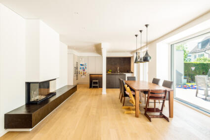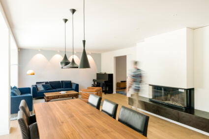 Es wurden zahlreiche Wände entfernt und das Haus nahezu vollständig entkernt. So konnten großzügig ineinander übergehende Wohnflächen entstehen, die Offenheit, Klarheit und Flexibilität vereinen.