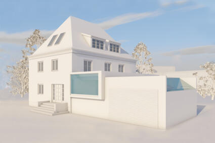 Das Walmdachhaus wurde im Jahr 1936 erbaut. Im Zuge der Sanierung wurden auch komplexe, individuelle Wünschen der neuen Eigentümer umgesetzt, sodass eine große Umplanung mit einem Erweiterungsbau, zusätzlicher Wohnfläche in Dach- und Untergeschoss, sowie einer großzügigen Doppelgarage nötig wurden. Durch die komplette Unterfangung des Kellers mit neuer, gedämmter Bodenplatte und Fußbodenheizung wurde mehr Raumhöhe für eine zeitgemäße Wohnnutzung umgesetzt.