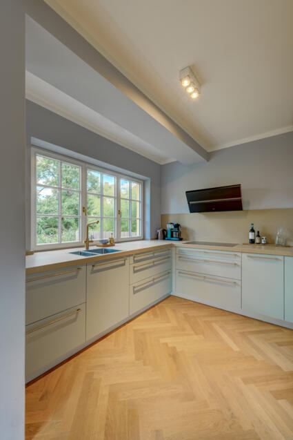 Die Oberflächen und Bodenbeläge wurden im gesamten Haus erneuert oder sorgfältig aufgearbeitet. Dabei wurde auf eine hochwertige Materialauswahl geachtet, die den historischen Charakter unterstreicht.