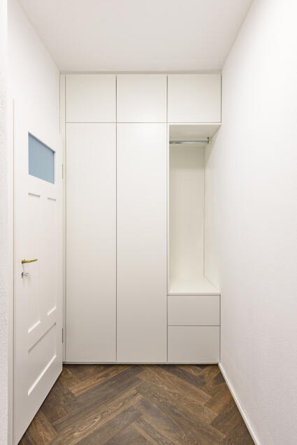 Beim Umbau und der Sanierung mit modernen Wohnansprüchen verlangten deshalb die strengen, denkmalschutzrechtlichen Auflagen nicht nur bei Bodenbelag und historischer Raumaufteilung einen gestalterischen Spagat. So musste sich der neu geschaffene Wintergarten-Anbau mit moderner Stahlfassade unter den bestehenden historischen Balkon einfügen.